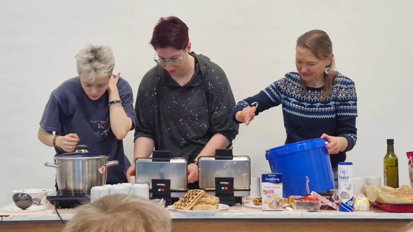 Am Nachmittag verwandelte sich das Dojo in einen Ort des gemütlichen Beisammenseins. Viele fleißige Hände hatten dafür gesorgt, dass es an nichts fehlte: liebevoll selbstgebackene Kuchen und Kekse, alkoholfreier Glühwein, Kaffee und weitere Köstlichkeiten luden zum Verweilen ein.